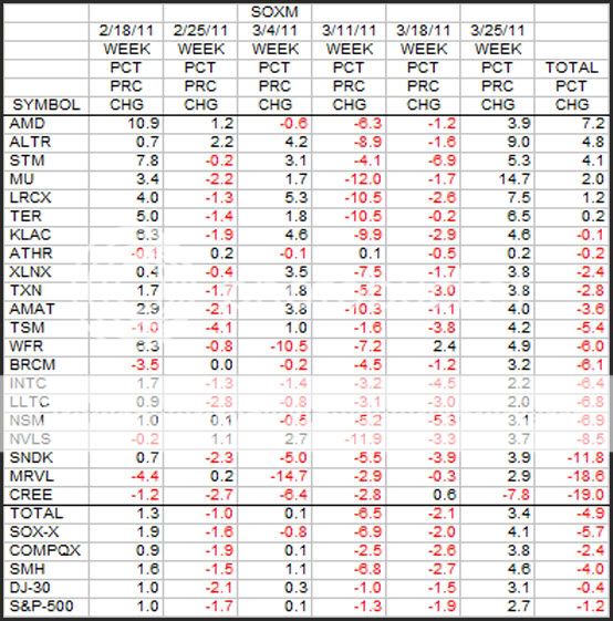 Like the Group, all SOXM indices at the bottom line are in the red. Only 6 stocks are up over this period.