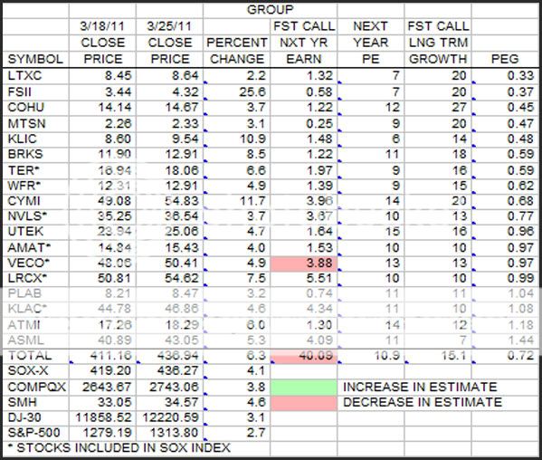 KLIC was up 10.9 percent this week, but still sports a PE of 6 and a PEG of 0.48.
