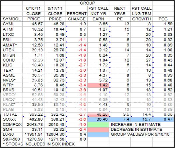 This is the weekly look at the Group stocks in terms of earnings estimates, growth estimates, and price changes sorted by price percent change.