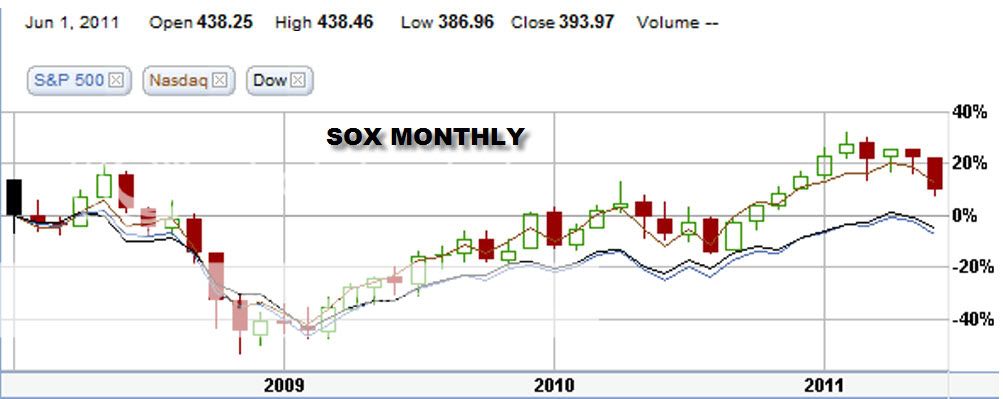 In 2011 so far, Jan, Feb, were up to reach the peak so far for the year. Mar was down, Apr was up, May was down to cancel out Apr, and now Jun is down big time with today and 3 more days to go in Jun. Jun being down corresponds well with the long term chart.