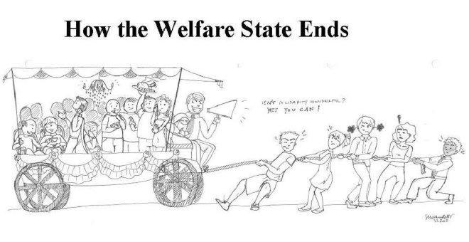 ...The welfare state starts with small programs targeted at a handful of genuinely needy people. But as politicians figure out the electoral benefits of expanding programs and people figure out the that they can let others work on their behalf, the ratio of producers to consumers begins to worsen.