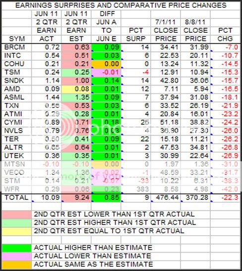 After today's action in the market, the table of earnings surprises and price changes has been updated with today's data.