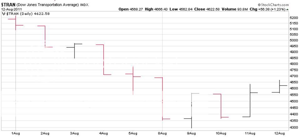 Notice how on Aug. 10, the Industrial Average closed below the lows of the previous 2 days' high-low