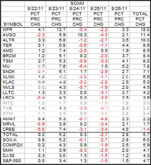 This is the weekly look at the SOXM stocks in terms of percent change.