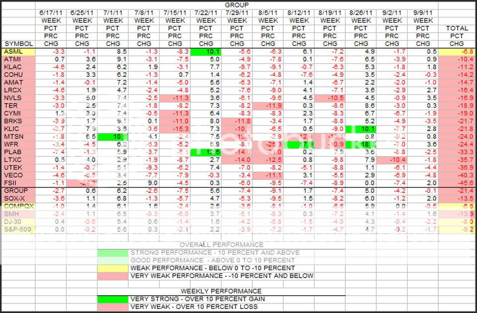 This is the weekly update of the 13 week rolling quarter for the Group stocks in terms of percent change.