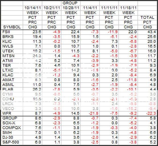 WFR's response the last 3 weeks to their third quarter earnings report has left them with a 22.3 percent loss for the period. FSII, however, is really "rocking" with a 43.4 percent gain.