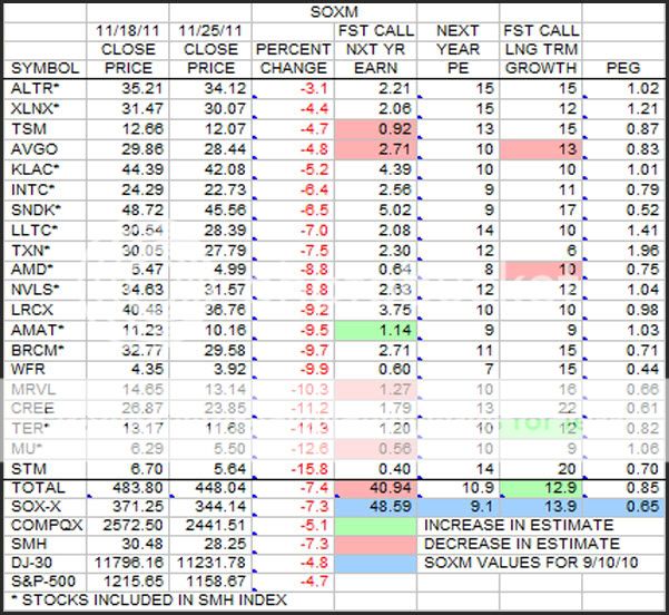 This is the weekly look at the SOXM stocks in terms of earnings estimates, growth estimates, and price changes sorted by price percent change.