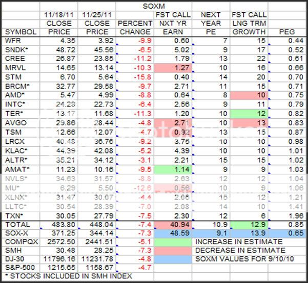 This is the same SOXM data as the last post, but this time it is sorted by PEG.