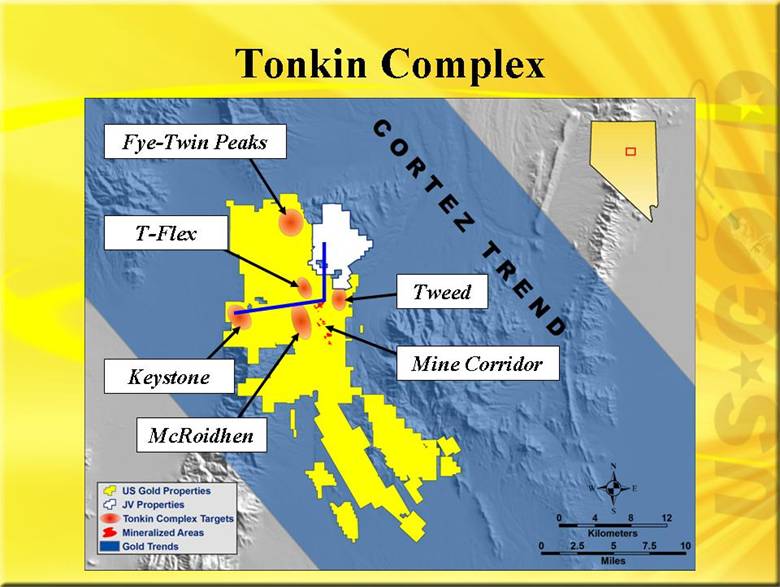 Properties acquired with TONE RESOURCES: 410 mining claims in Eureka, Pershing, Elko, and Lander counties. Projects include Red Ridge project that is located in the Rain mining district on the Carlin Trend, Area. This area is mostly controlled by Newmont Mining. Fish Creek project in the Battle Mountain (Cortez) area, where Newmont, Kinross and Copper Canyon are neighbors. Roberts Mountain projects, which consist of : Kobeh project Roberts Creek project Gold Bar North project in the Battle Mountain (Cortez) area South Keystone project Big Antelope Springs project Kent Springs project TONE RESOURCES had acquired Crescent Valley North (CVN) claims from KM Exploration Ltd. The property consists of 76 unpatented lode mining claims which cover several exposed and unexposed, large, epithermal-type, calcite-bearing quartz veins. The property is located at the northeast end of Crescent Valley about 15 miles southwest of the town of Carlin.