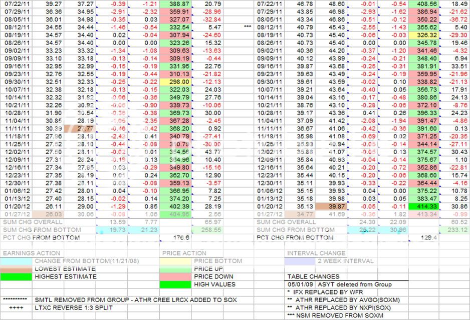 This is the weekly update of the Group and SOXM(SOX) tables in terms of earnings estimate and price changes.
