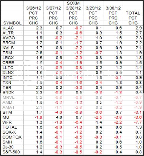The "picture" looks pretty much like the Group performance. SOXM 1.3 percent gain, and SOX 0.7 percent gain for the week.