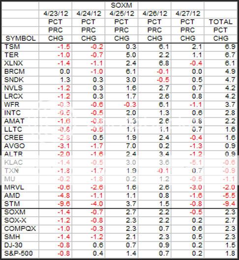This is the weekly look at the SOXM stocks in terms of percent change.
