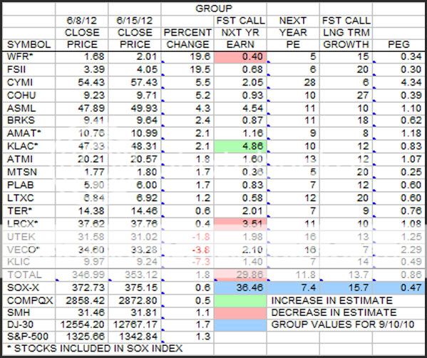 This is the weekly look at the Group stocks in terms of earnings estimates, growth estimates, and price changes sorted by price percent change.