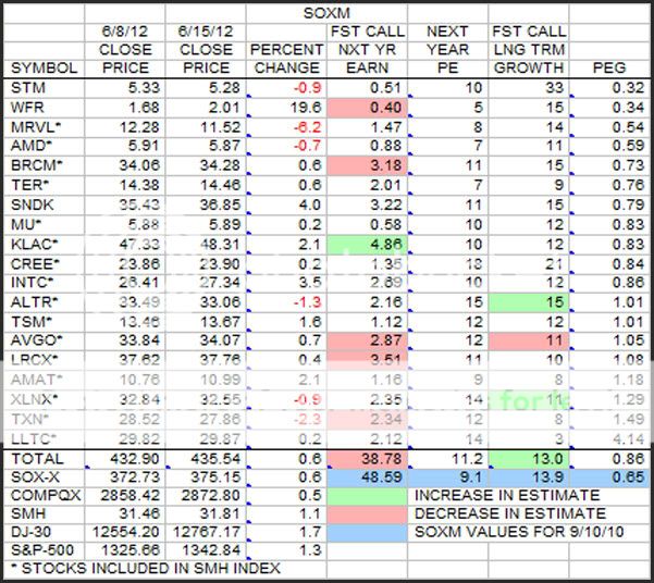 This is the same SOXM data as the last post, but this time it is sorted by PEG.