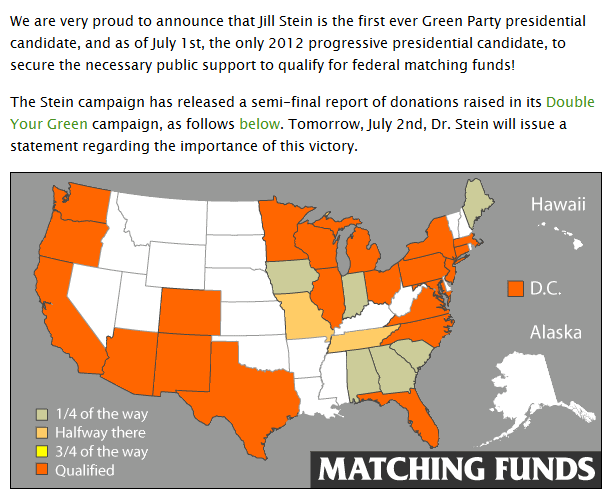 Another headache for Obama. Green Party getting matching funds.