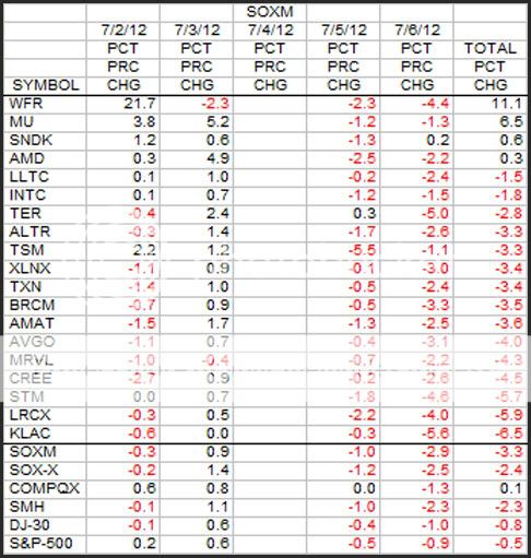 This is the weekly look at the SOXM stocks in terms of percent change.