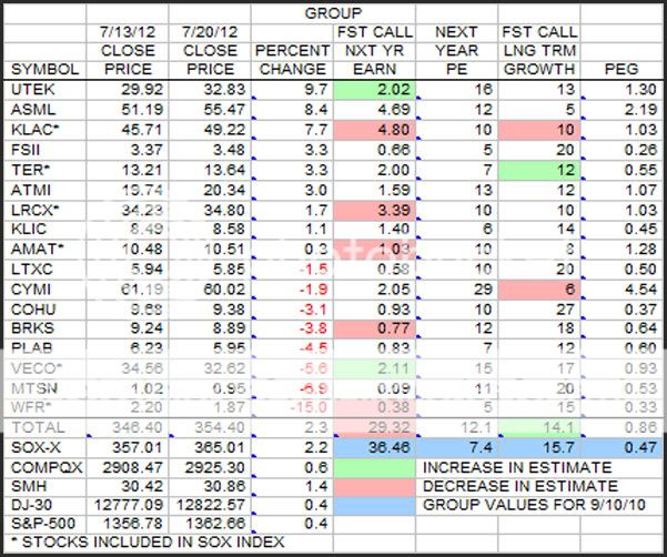 This is the weekly look at the Group stocks in terms of earnings estimates, growth estimates, and price changes sorted by price percent change.