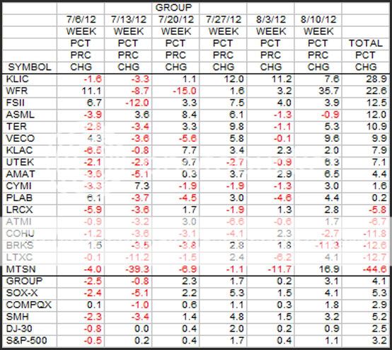This is a longer 6 week look at the Group stocks in terms of percent change.