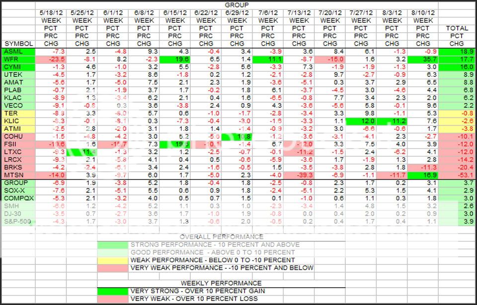 This is the weekly update of the 13 week rolling quarter for the Group stocks in terms of percent change.