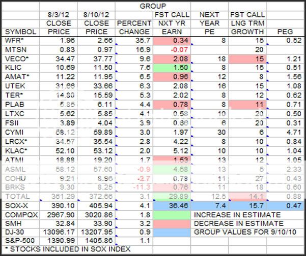 This is the weekly look at the Group stocks in terms of earnings estimates, growth estimates, and price changes sorted by price percent change.