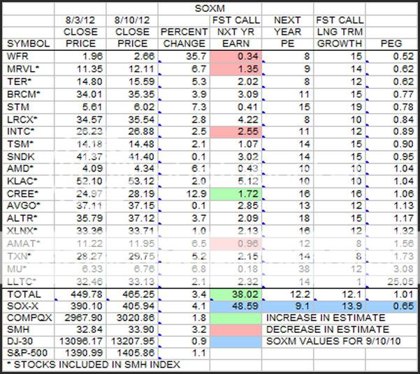 This is the same SOXM data as the last post, but this time it is sorted by PEG.
