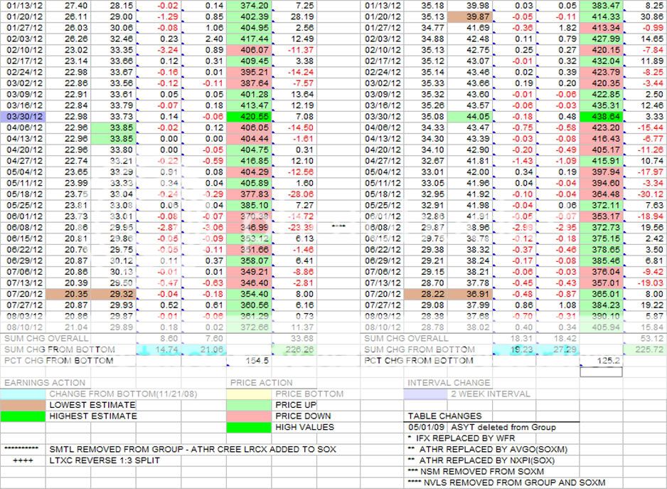 This is the weekly update of the Group and SOXM(SOX) tables in terms of earnings estimates and price changes.