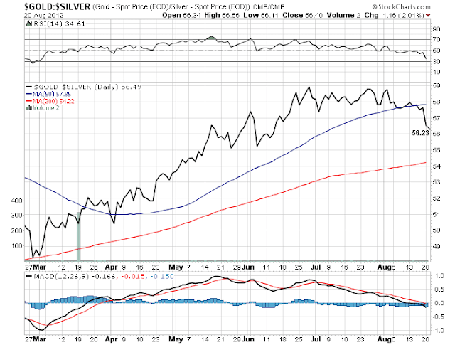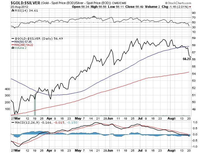 Gold/Silver ratio starting to look bullish for silver