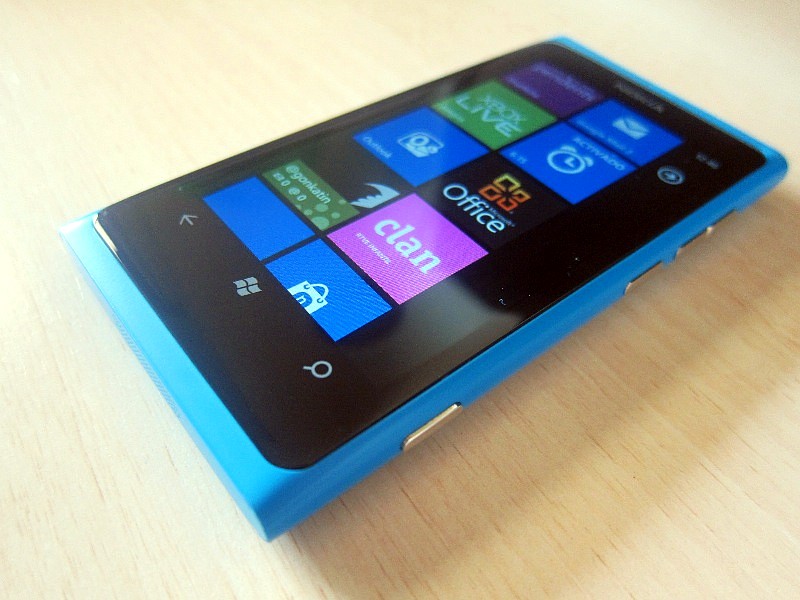 | | My cyan Nokia Lumia 800 resting on my desk | The phone is really pocketable, it fits perfectly into the pocket and you barely notice it's there. It has the perfect size: neither large nor small (for everyday use I would rather prefer phones to tablets).