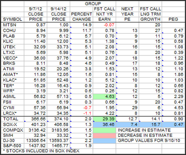 This is the weekly look at the Group stocks in terms of earnings estimates, growth estimates and price changes sorted by price percent change.