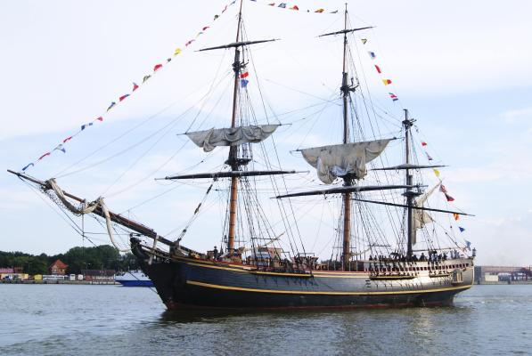 The replica of HMS Bounty, which launched in Lunenburg in 1960, was made famous in a 1962 movie starring Marlon Brando — Mutiny on the Bounty. It has also appeared in Pirates of the Caribbean: Dead Man's Chest starring Johnny Depp.