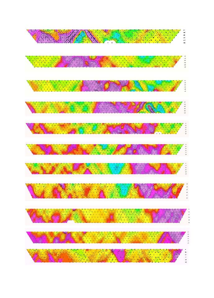 Here is another view of grid two, each I.P. slice is set one over the other so you can see the high chargeability at a progressive angle across the grid. There has to be some company out there that would want a 50% joint venture at a bargain basement price.