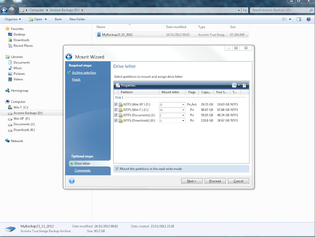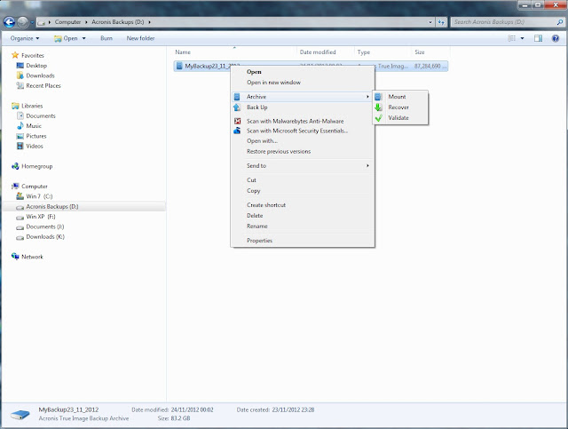 I have the Acronis program installed mainly to access the data on the images. You can access the data in two ways. First by right clicking on the image file.