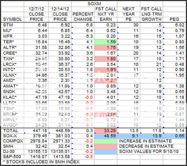 This is the weekly look at the SOXM stocks in terms of earnings estimates, growth estimates and price changes sorted by price percent change.