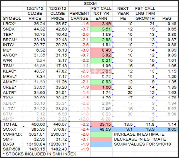 This is the same SOXM data as the last post, but this time it is sorted by PEG.
