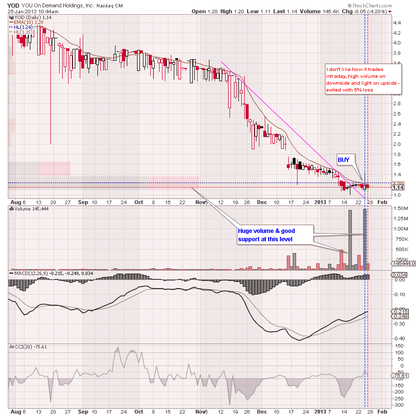 YOD - out at 1.15, don't like intra day action. Down ticks are with higher volume. Loss ~5%