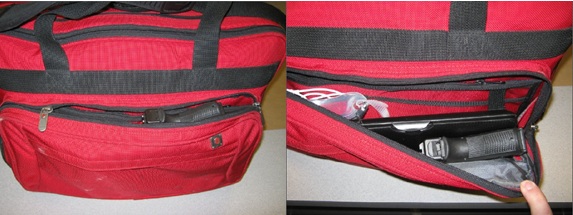 2. The photograph released by the airport police, which has not been previously published, shows that the gun was in the front pocket of his carry-on bag, on top of his iPad. (See below):