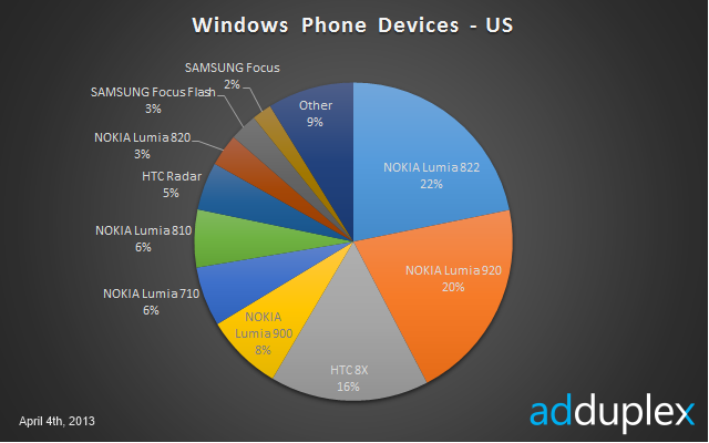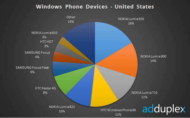 I'd assume that among the 18% Other category from the first graph would be other models from Nokia and HTC. Among the HTC and Nokia models that did not place in the top ten would be all the first gen devices, like my trusty HTC Arrive, and the Lumia 520, 720, 810, and 510. I can see those accounting for the 2% overlap.