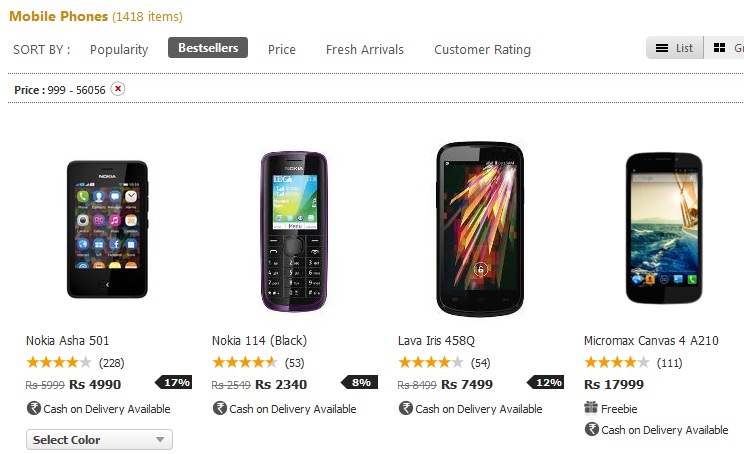 At major retailer Snapdeal, one or other Nokia has been holding the fort in bestsellers list. Currently it is Asha 501 which is the top selling phone at Snapdeal.