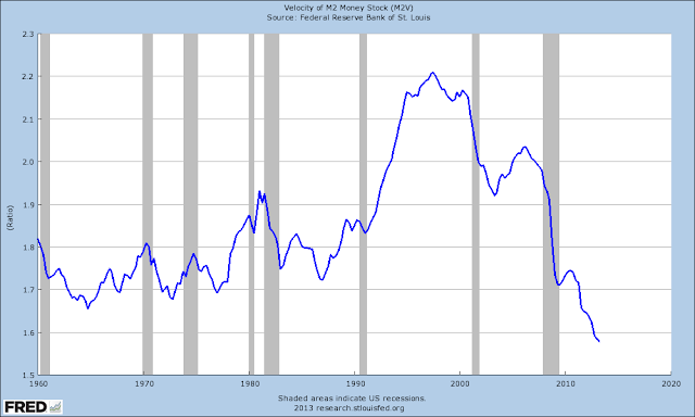 As you can see, the velocity of the two broad money supply measures is dropping to historic lows.