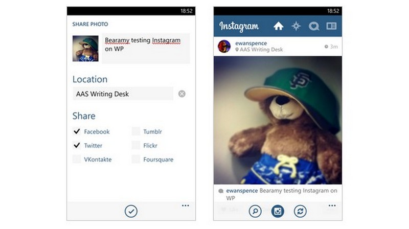 This is partially offset by being integrated into the sharing menus of Windows Phone, so you can upload an existing media item when you come across it in the OS. A long press, select the sharing option, and Instagram will open up to let you edit and post the image.