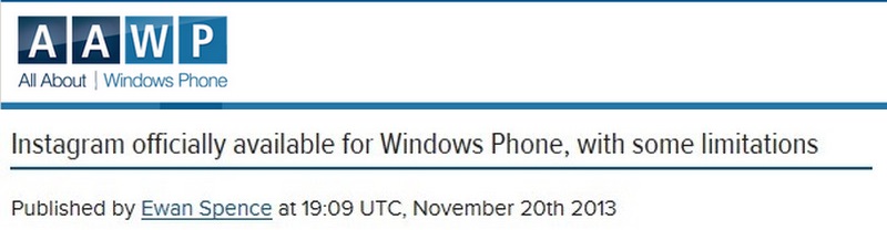 While many developers have utilised the Instagram API, and leveraged 'man in the middle' servers to create third party clients on a variety of mobile platforms (including Blackberry and WP), Windows Phone is only the third platform to have an official client release from Instagram.