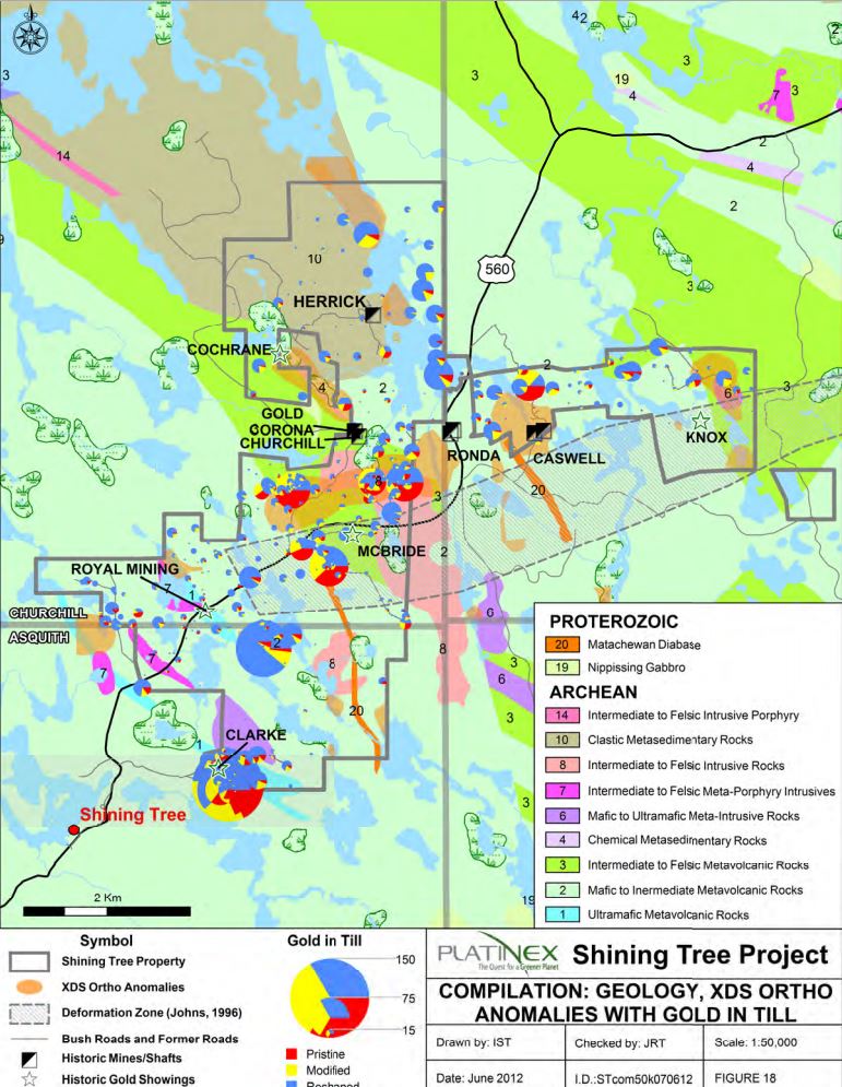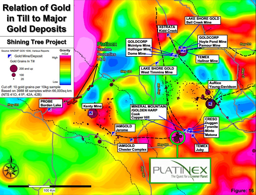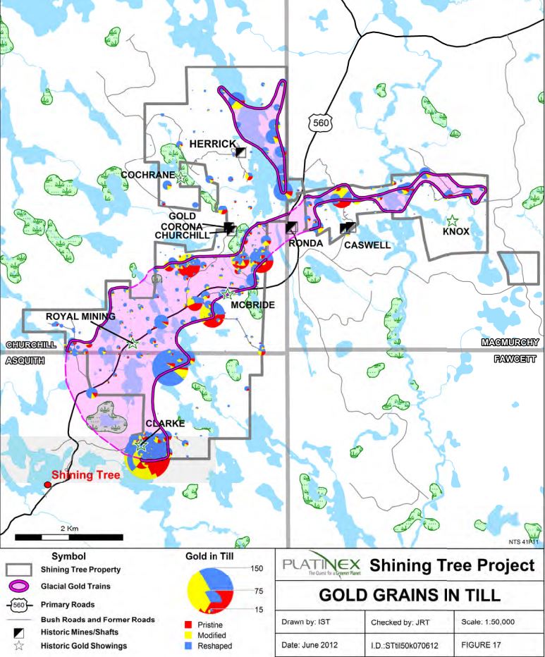 Platinex Shining Tree Project Relation of Gold in Till to Major Gold Deposits