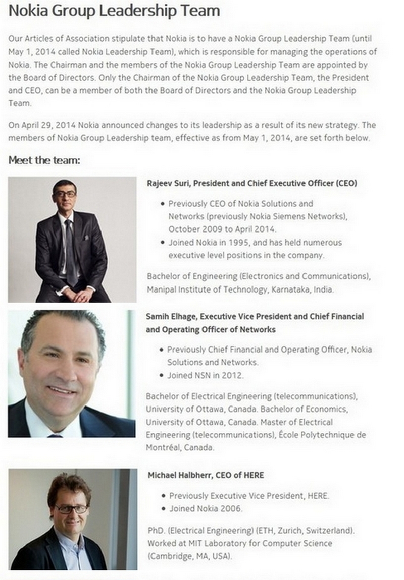 The Nokia (NOK/NOK1V) Leadership Team Today ...