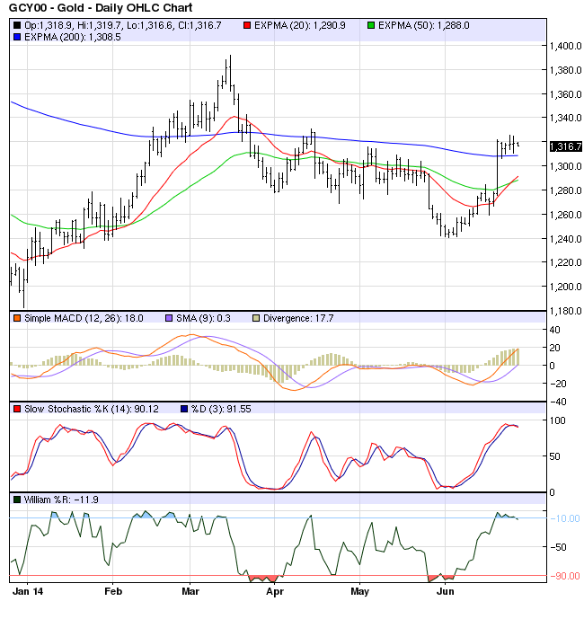 So if you look at the EMA's, ... the 200-day is still supporting gold at this time, as gold bounces off of it while failing to achieve yet higher closes, ... so if gold cant breakout again and move above the $1,331 which is that next peak to the left, ... before months end, we are probably headed back down to the low $1,200, not a whole lot of support in this last bounce higher, and since quarterly statements are due, ... I'm sure managers with profit will add the gains to the tally for its customers.