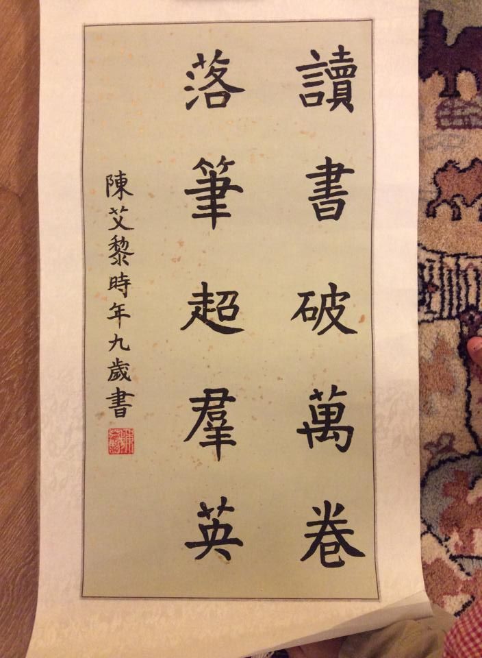 after winning all-hk #1 for calligraphy (translation: read more than ten thousand books; pen better than the best)