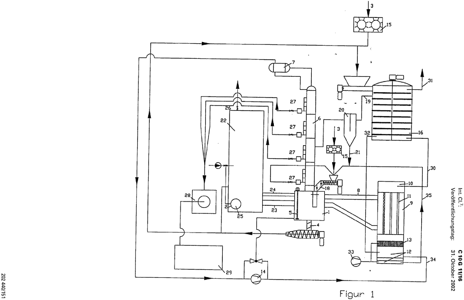 (DE000010049377) Process for olation of plastics, greases, oils and other hydrocarbon-containing waste comprises stirring a catalyst in a circulation of high-boiling hydrocarbons, and adding the waste to the reactor part below the distillation arrangement