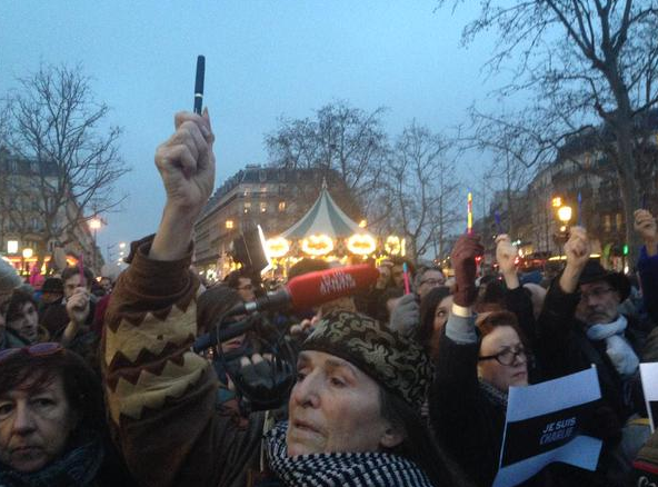 In Paris, ralliers held pens in the air to show that speech would not be quelled by the threat of violence: