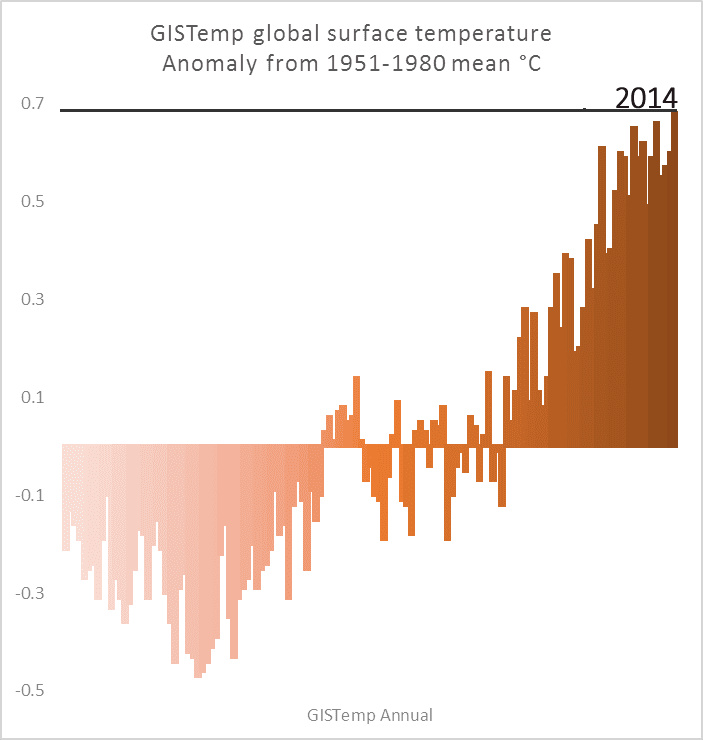 Not only that, but if you go back as far as the records go, 2014 is the hottest year in the entire record:
