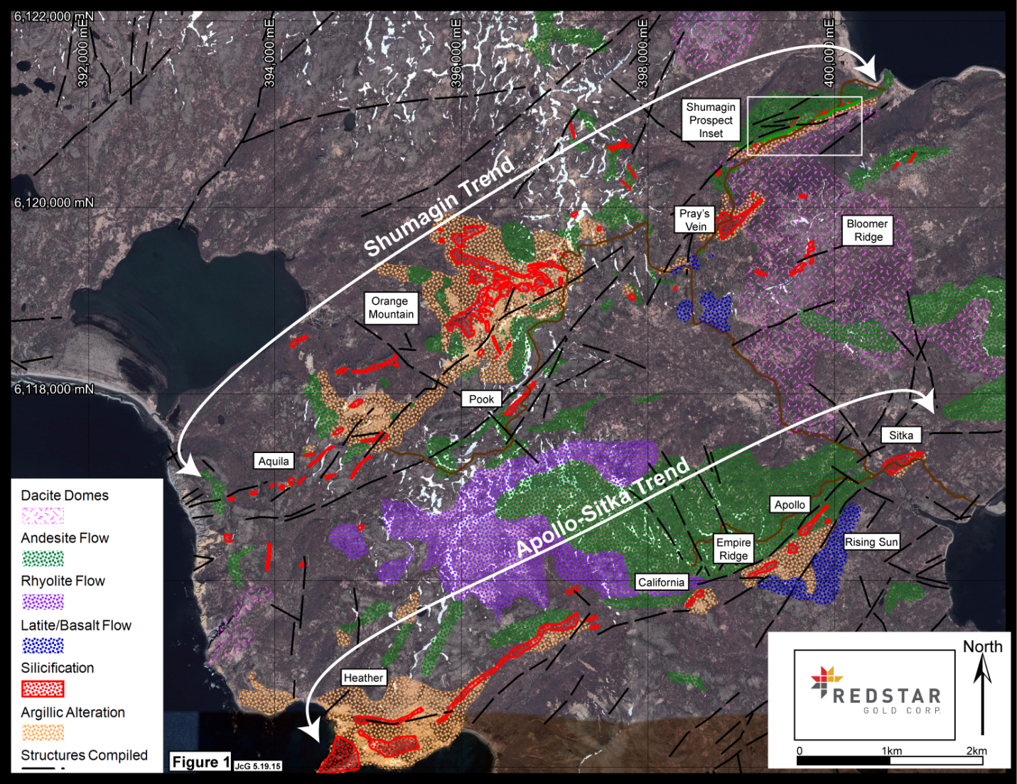 With the consolidation of the lands on the Unga Project, Redstar Gold will be the first exploration company to comprehensively explore on a district-scale the numerous gold and silver occurrences that are known to exist on the islands.
