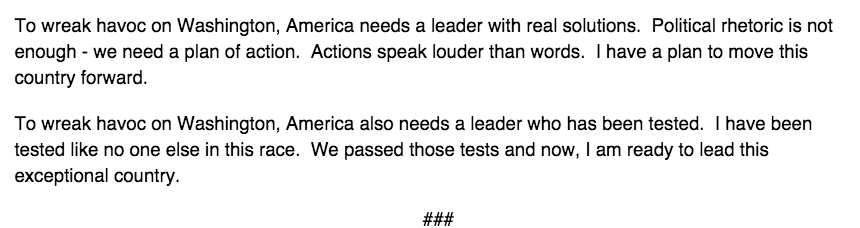 In speech today, @ScottWalker will promise to "wreak havoc on Washington"